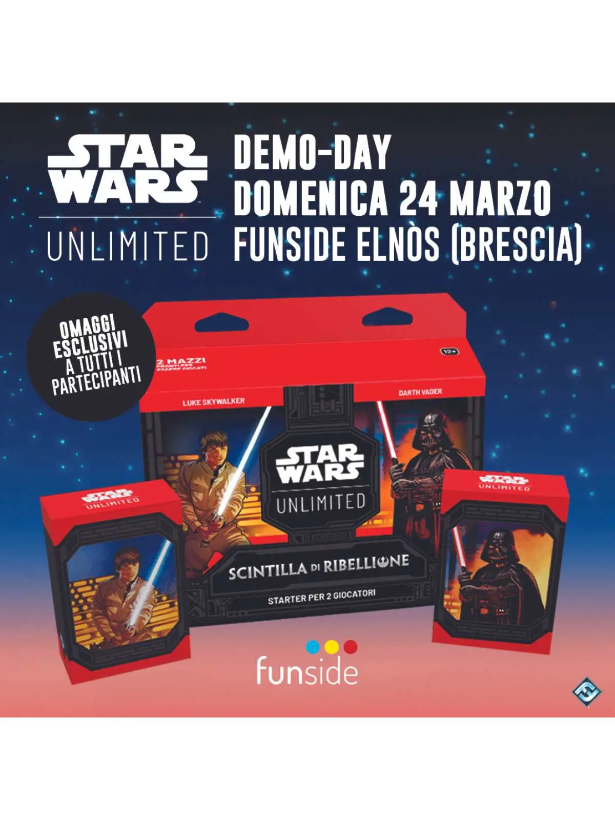Questa domenica 24 marzo, ti aspettiamo davanti al negozio Funside a ELNÒS Shopping, dalle 15.00, per partecipare all’evento esclusivo Demo Day di Star Wars Unlimited.