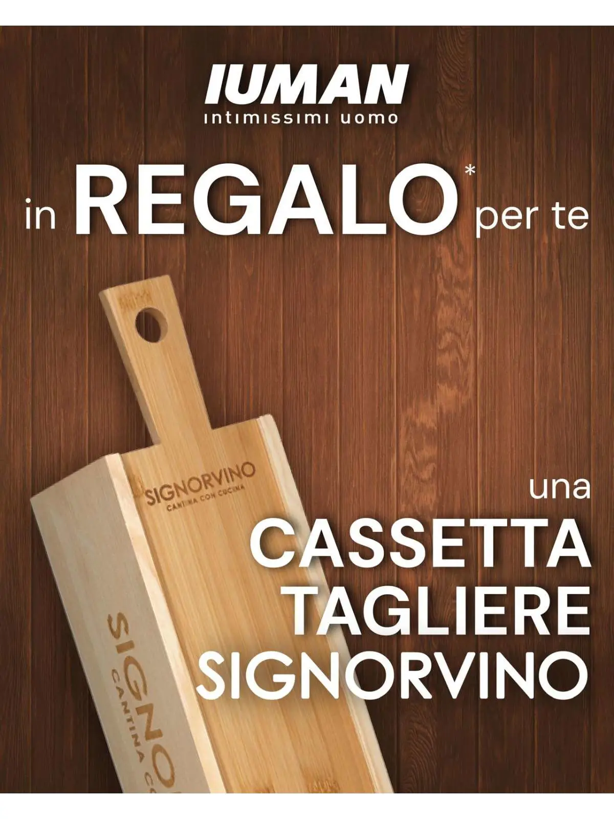 Celebra la festa della Mamma. Da IUMAN Intimissimi Uomo potrai ricevere un tagliere pirografato in omaggio.