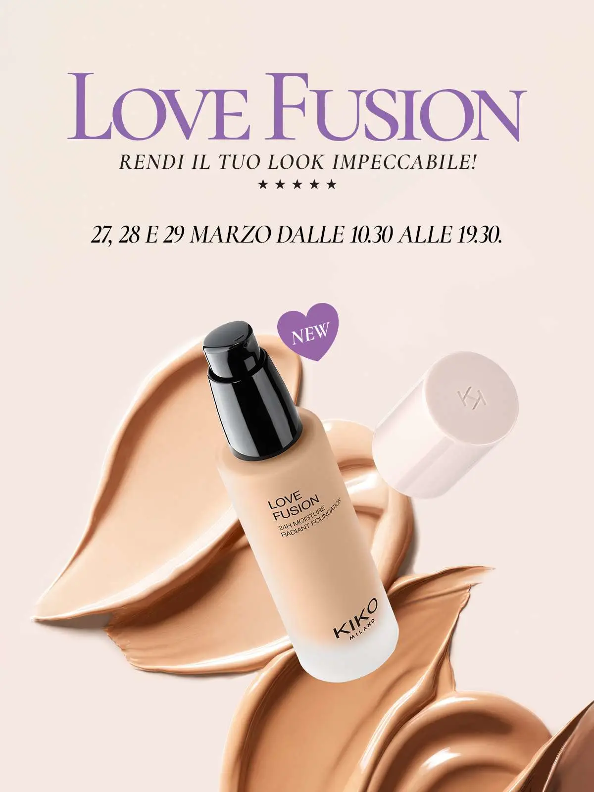 Il 27, 28 e 29 marzo dalle 10.30 alle 19.30 KIKOMilano ti invita a scoprire Love Fusion con il servizio gratuito Makeup&Go, una consulenza beauty della durata di 10 minuti.