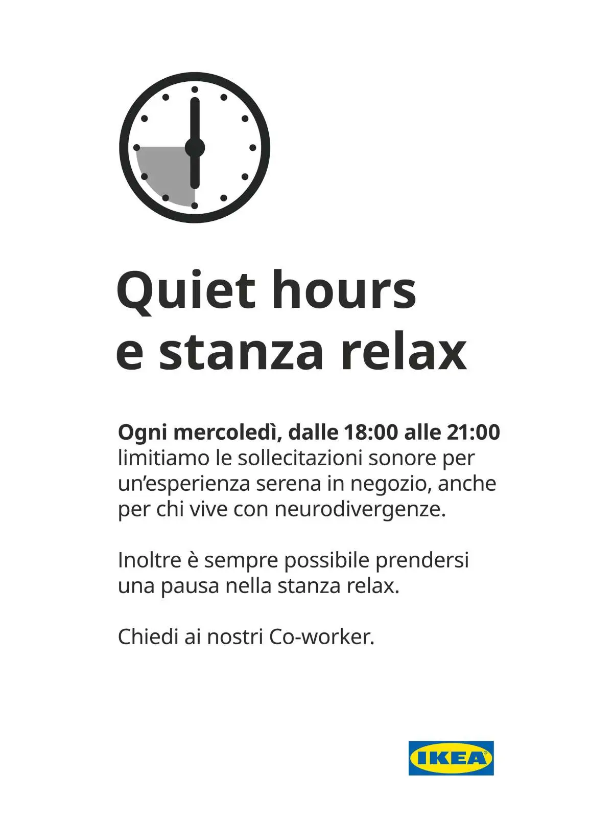 Ogni mercoledì, dalle 18:00 alle 21:00 limitiamo le sollecitazioni sonore per un'esperienza serena in negozio, anche per chi vive con neurodivergenze.