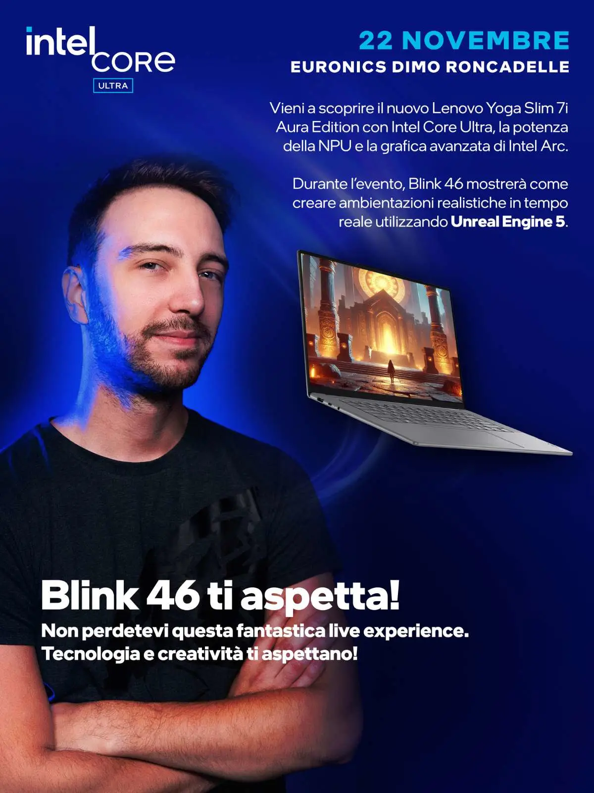 Il 22 novembre, presso Euronics Dimo a ELNÒS Shopping, vivi un’imperdibile live experience con il nuovo Lenovo Yoga Slim 7i Aura Edition equipaggiato con i potenti processori Intel Core Ultra Serie 2!