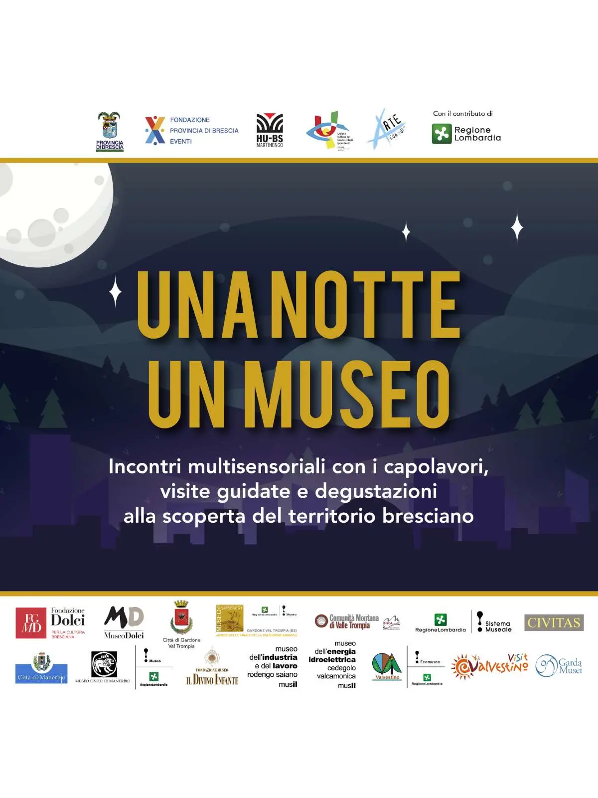 Un Museo e il suo capolavoro, dal buio alla luce, il territorio che li ospita e le visite multisensoriali sono i tasselli della seconda edizione di #UnanotteunMuseo, progetto ideato e promosso da Fondazione Provincia di Brescia Eventi e Provincia di Brescia con l’intento di far riscoprire Brescia e la sua provincia attraverso la cultura e le opere d’arte rappresentative dei suoi musei.