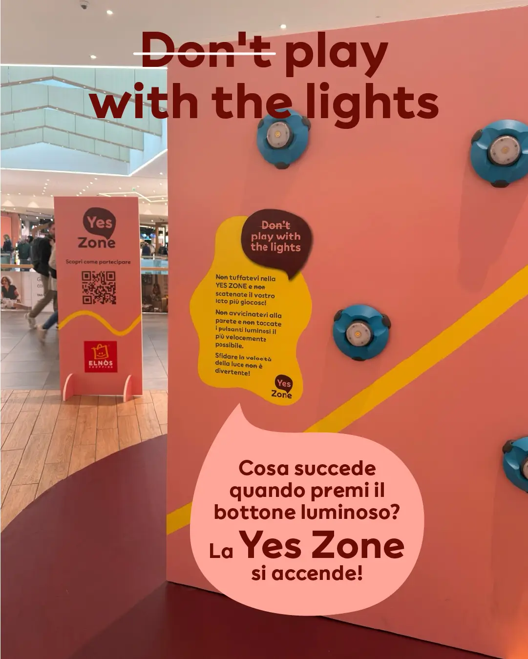 A ELNÒS Shopping la Yes Zone si accende con il nuovo gioco Don't play with the lights! Un mondo interattivo dove divertirsi è la regola (non l’eccezione).