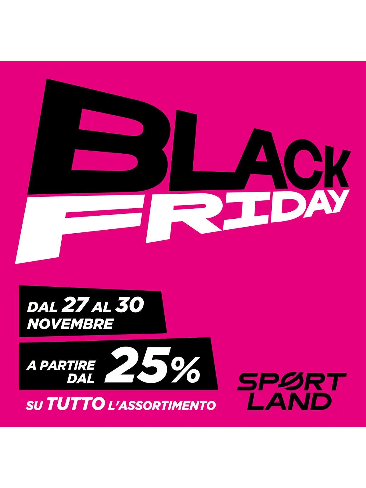Il Black Friday arriva anche da Sportland! Vieni a trovarci e approfitta -25% di sconto su tutti gli articoli.