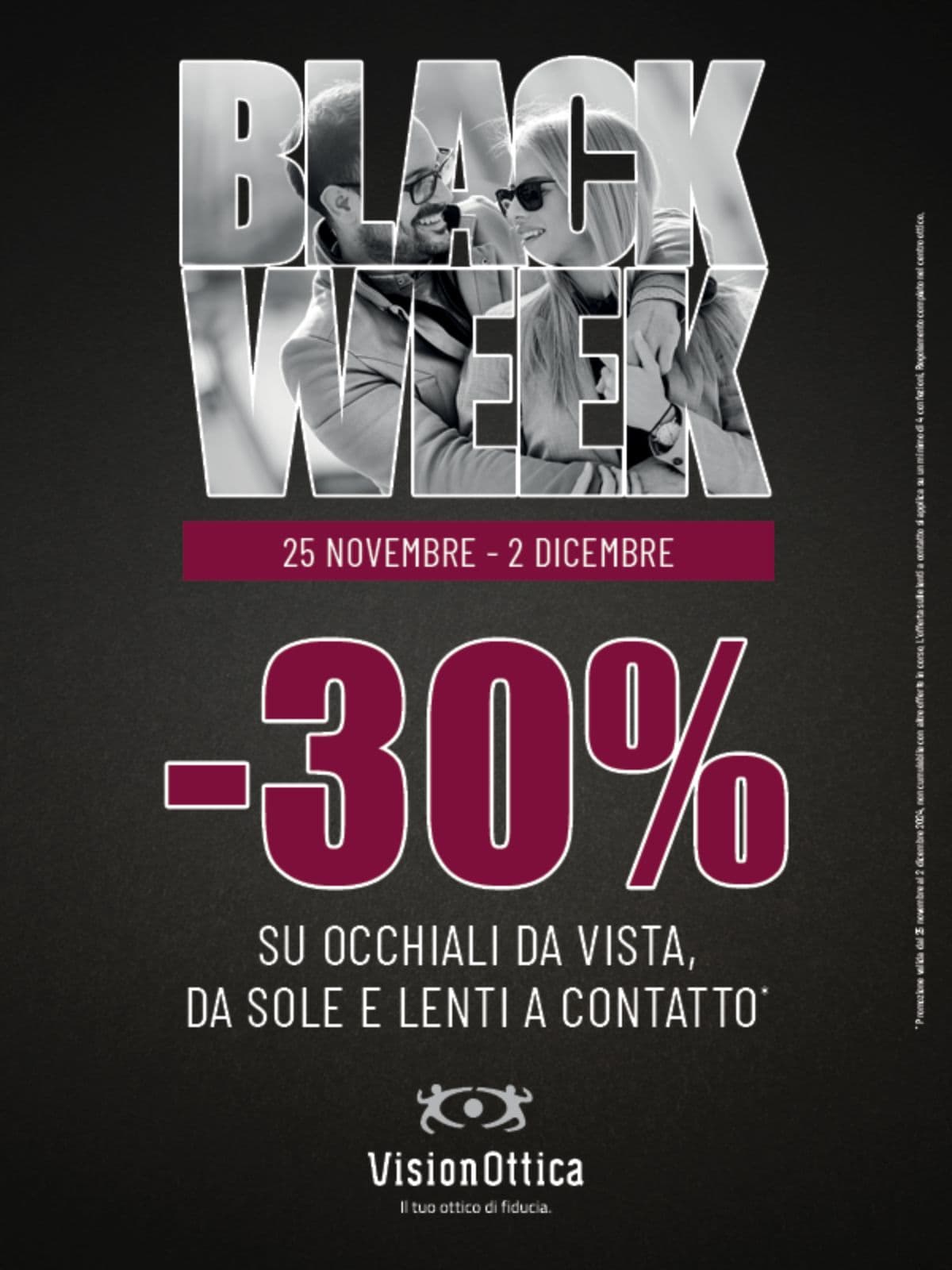 Per la Black Week da VisionOttica c'è il 30% di sconto su occhiali da vista, da sole e lenti a contatto.