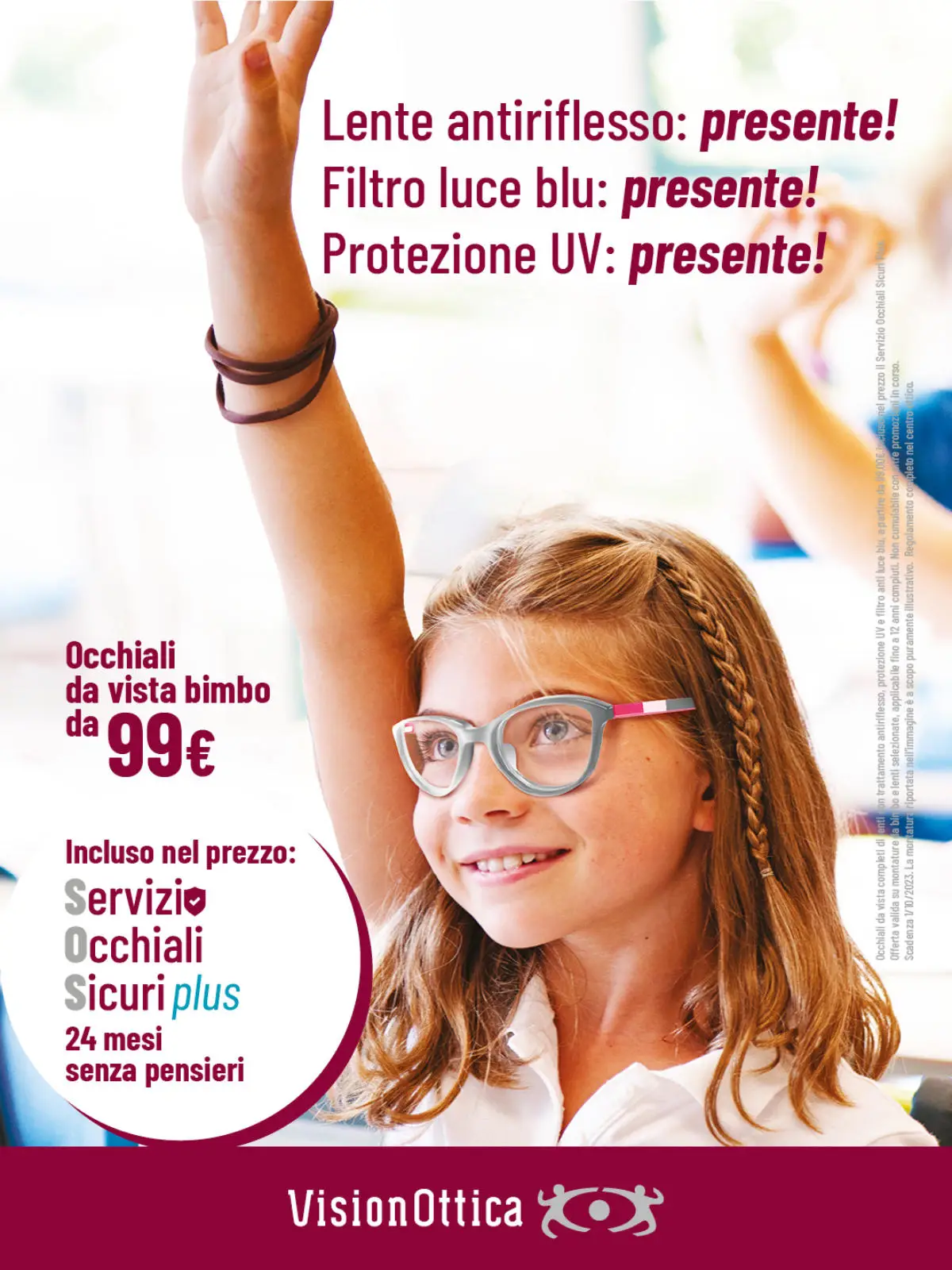In più, una speciale promozione: il “Servizio Occhiali Sicuri Plus”, 24 mesi senza pensieri, è incluso nel prezzo!