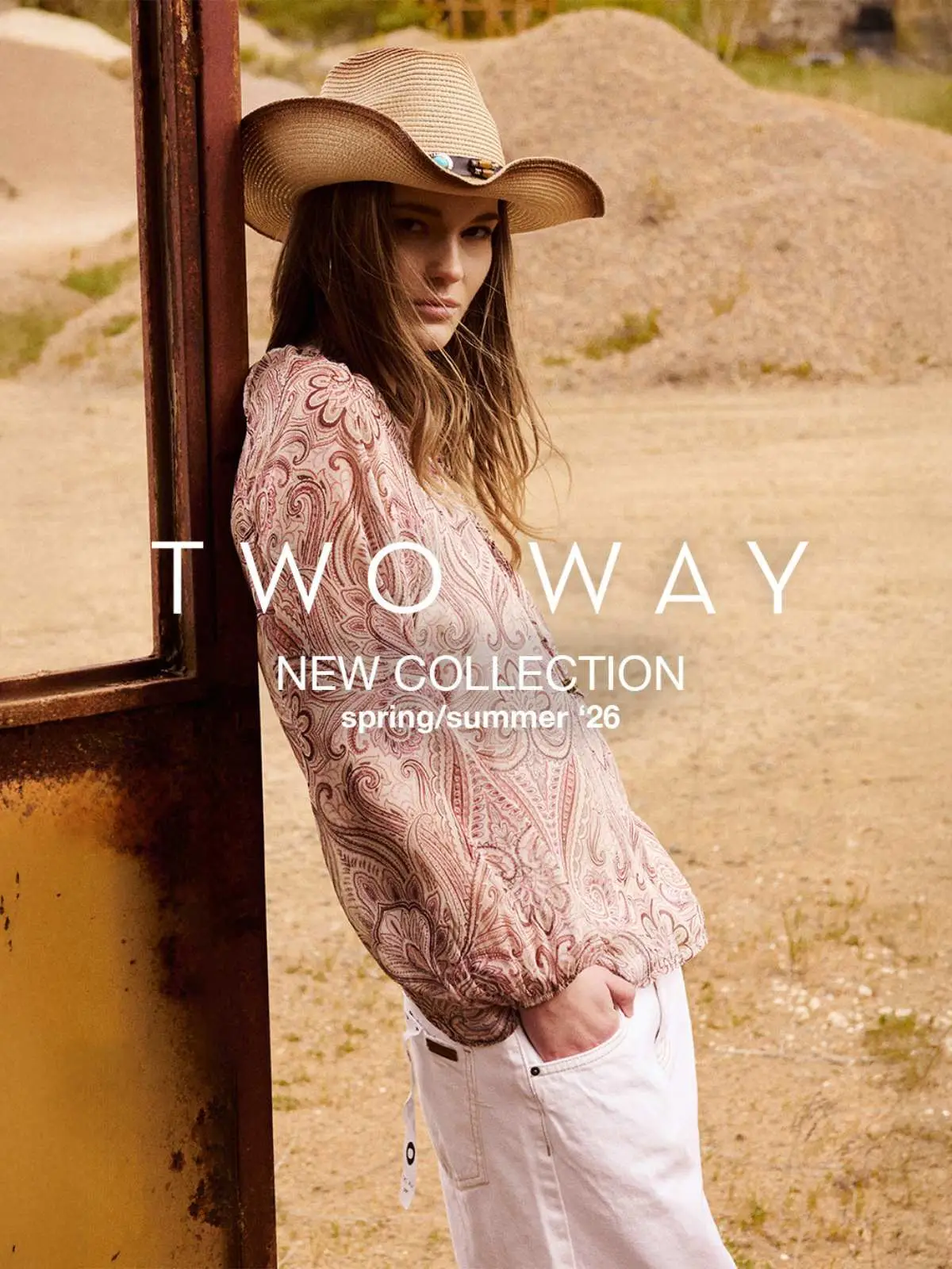 Scopri gli ultimi arrivi della Spring/Summer 26 di TWO WAY Un gioco di layering, stampe e tocchi western costruisce silhouette fluide e contemporanee, per una stagione dal gusto naturale e sofisticato.