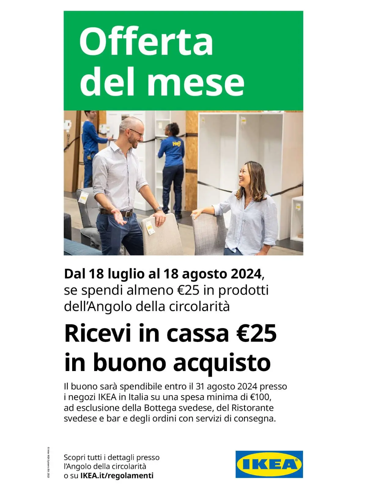 Il buono sarà spendibile entro il 31 agosto 2024 presso i negozi IKEA in Italia su una spesa minima di €100, ad esclusione della Bottega svedese, del Ristorante svedese e bar e degli ordini con servizi di consegna.