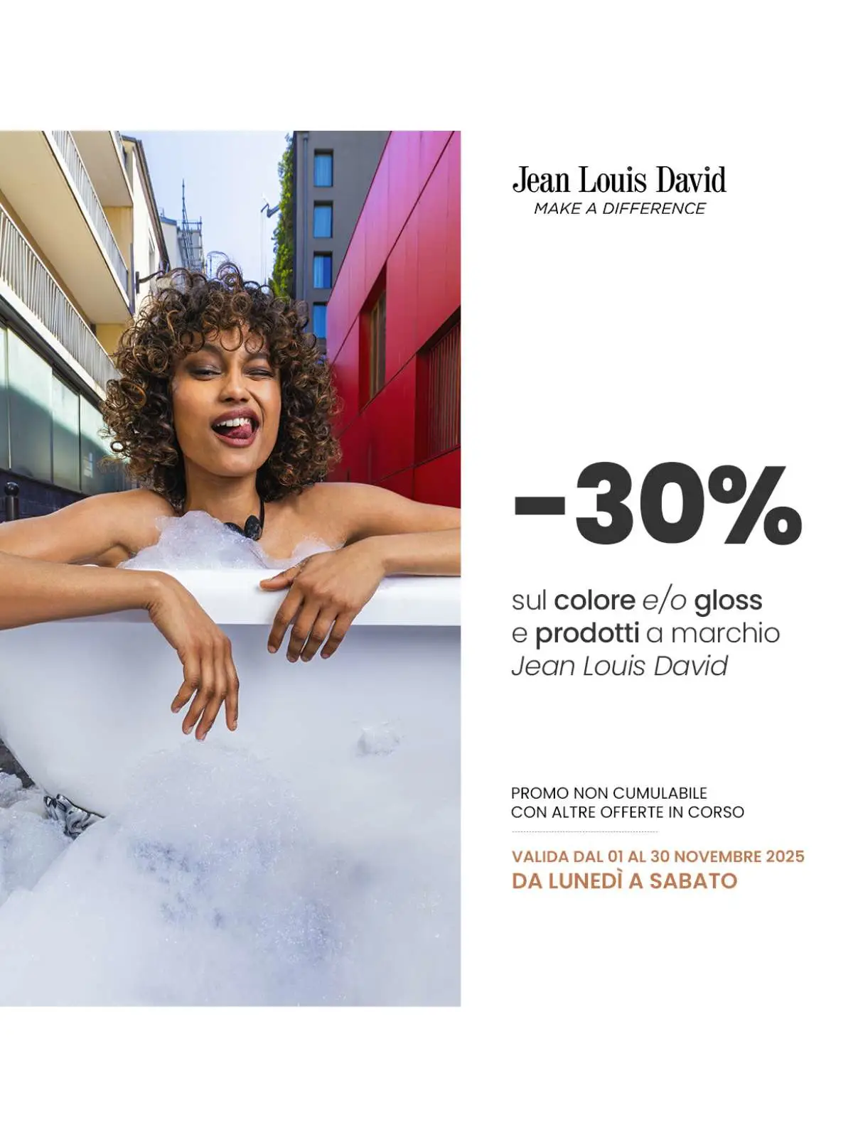 Approfitta del –30% su colore e/o gloss e sui prodotti a marchio Jean Louis David.