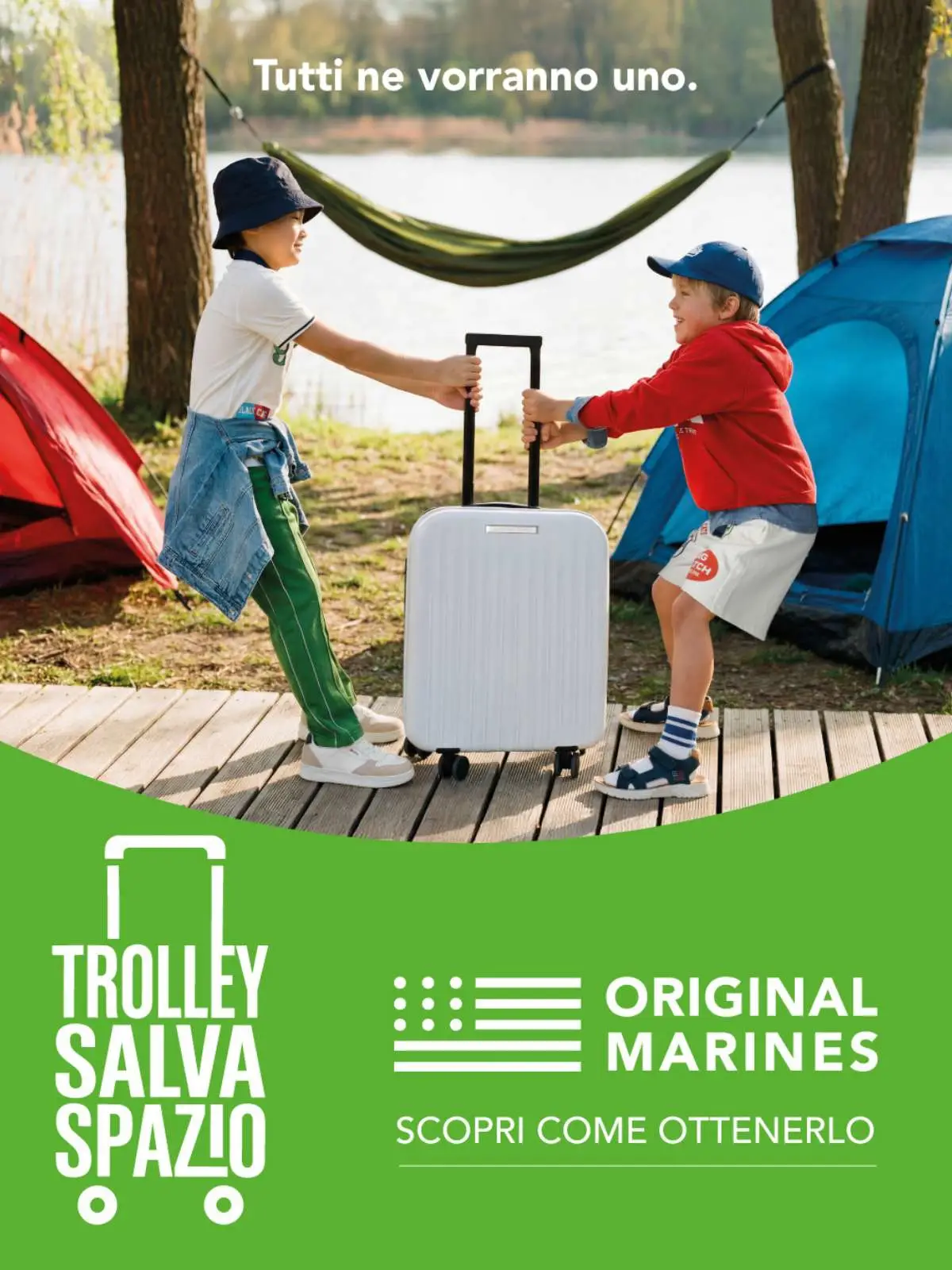 Da Original Marines puoi ottenere subito il nuovo trolley salva spazio con una spesa minima di €120 e un contributo di soli €10. Compatto, estensibile e con uno spessore record di soli 8 cm da chiuso.