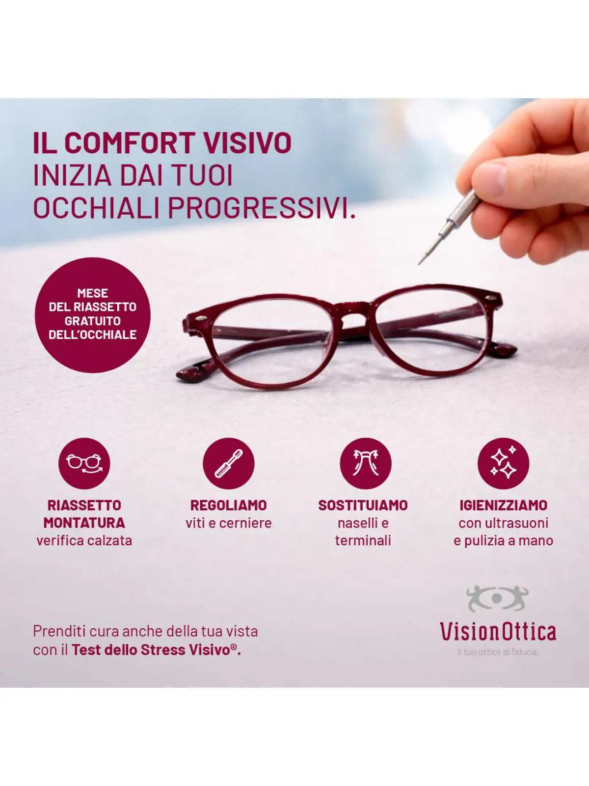 Il corretto assetto dell'occhiale è essenziale per una visione efficace a tutte le distanze. Ti aspettiamo in centro ottico per un controllo professionale dei tuoi occhiali e per un Test dello Stress Visivo®. Seguici per scoprire tutti i nostri servizi!