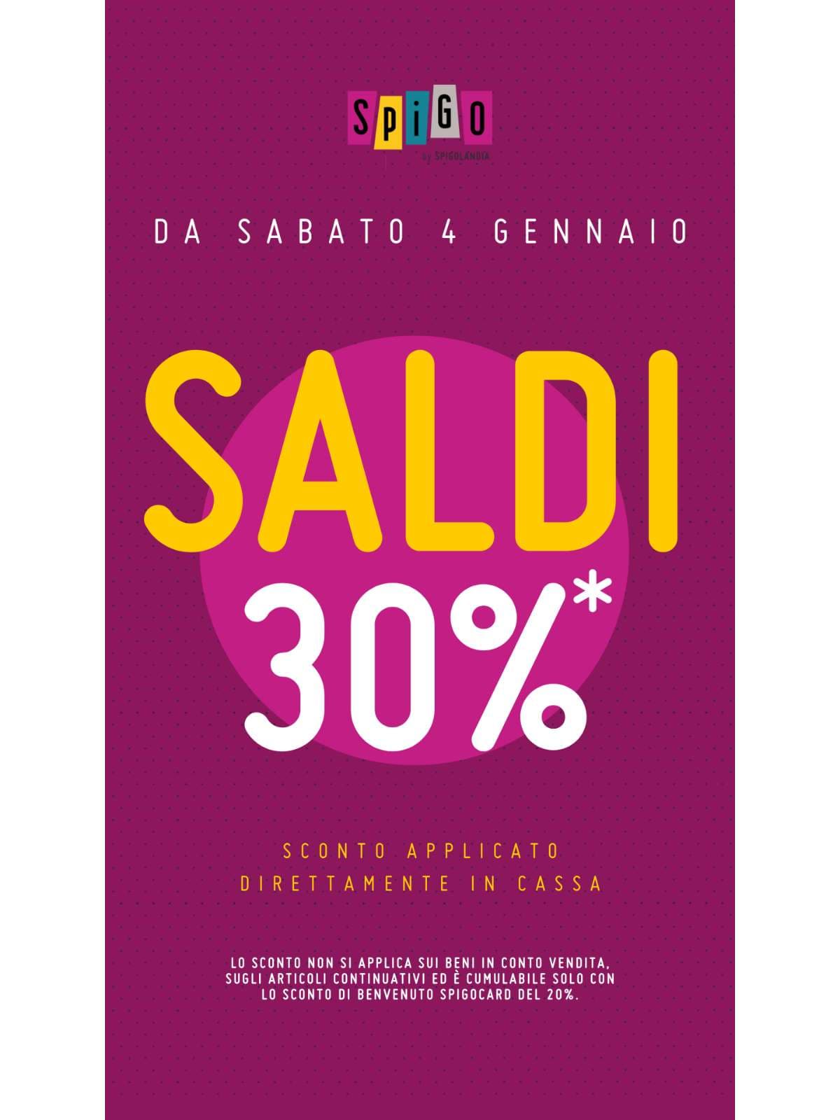 Come ogni anno, l’appuntamento con i saldi invernali arriva puntuale! Da sabato 4 gennaio approfitta del 30% di sconto* a SPIGO. Ti aspettiamo in negozio!