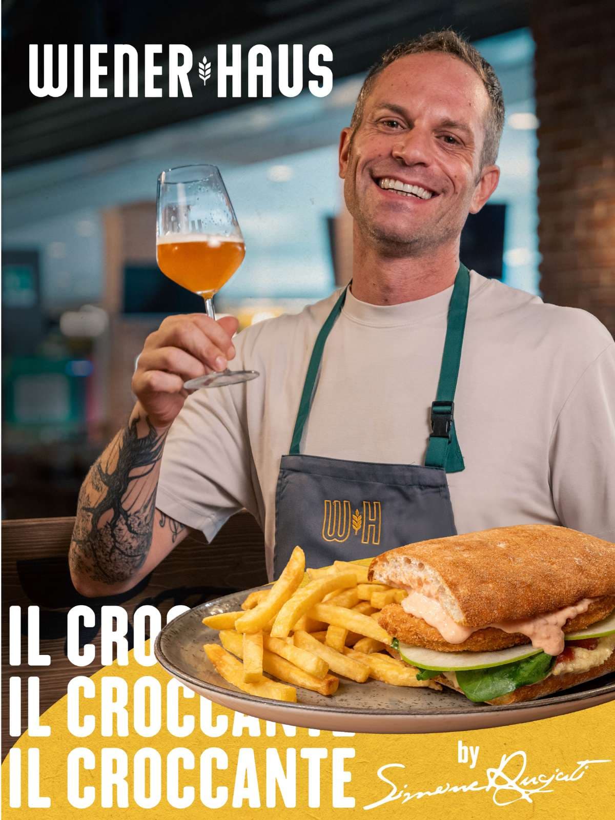 Assaggia IL CROCCANTE, il nuovo panino firmato dallo CHEF SIMONE RUGIATI in LIMITED EDITION FINO AL 16 OTTOBRE un mix di tradizione ed innovazione... per un gusto "WOW"! panino° + patate fritte + salsa Wiener + BIRRA KOZEL 0,3L 17,90 solo panino 14,90 °Pane cristallo*, salsa agli agrumi e crema cacio e pepe, pomodorini semi-dry*, spinacino, mela verde, cotoletta di pollo* panata nel panko e maionese ai pomodorini, servito con patate* fritte e salsa Wiener *prodotto decongelato