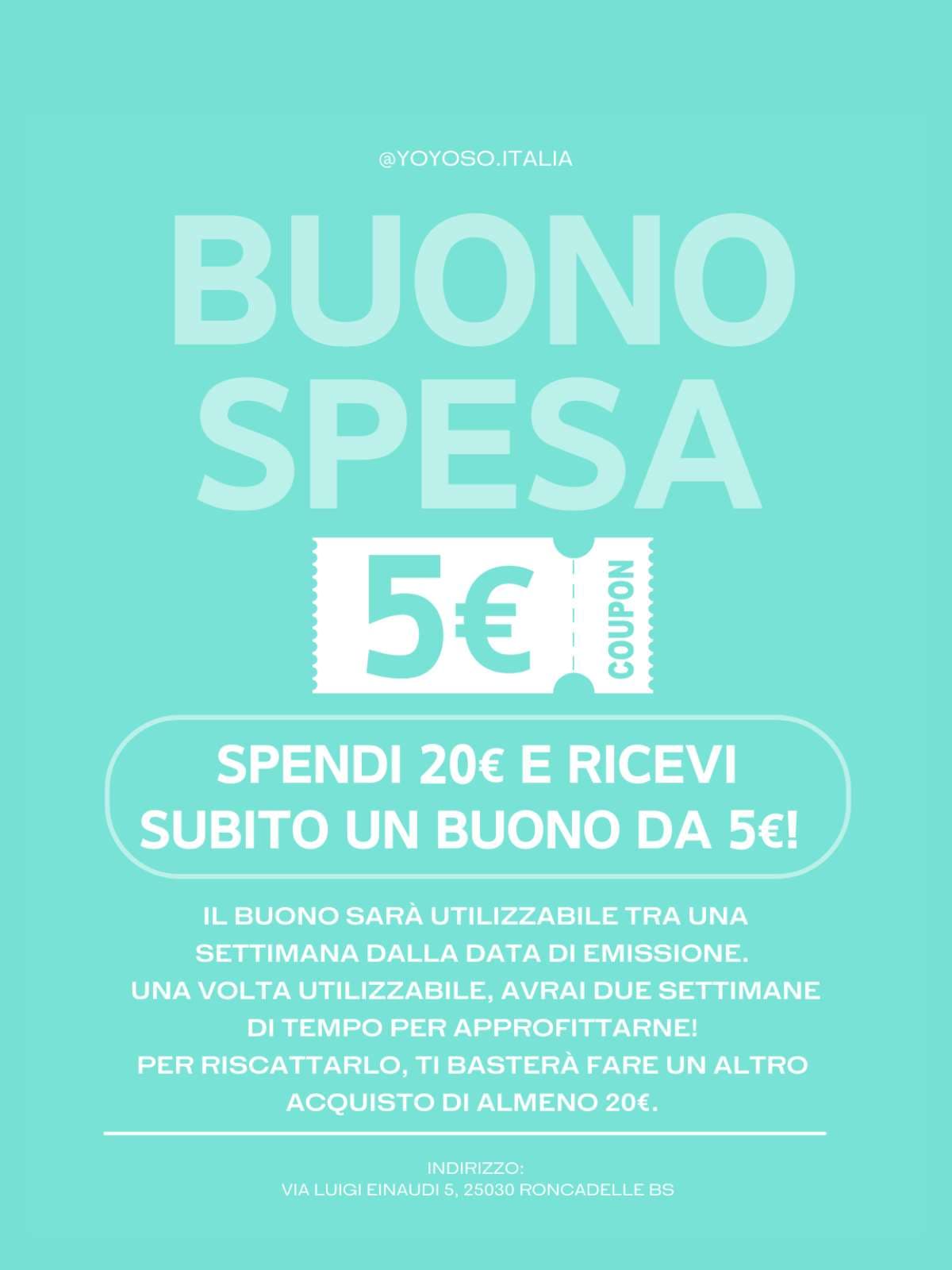 Spendi 20€ e ricevi subito un buono da 5€!