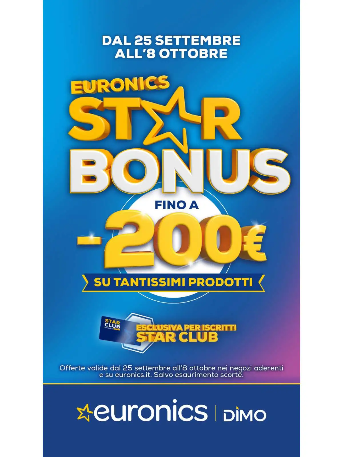 Con Star Bonus Euronics hai subito sconti fino a 200€ su tanti prodotti pensati per te. Che aspetti? Non lasciarti sfuggire un’occasione stellare