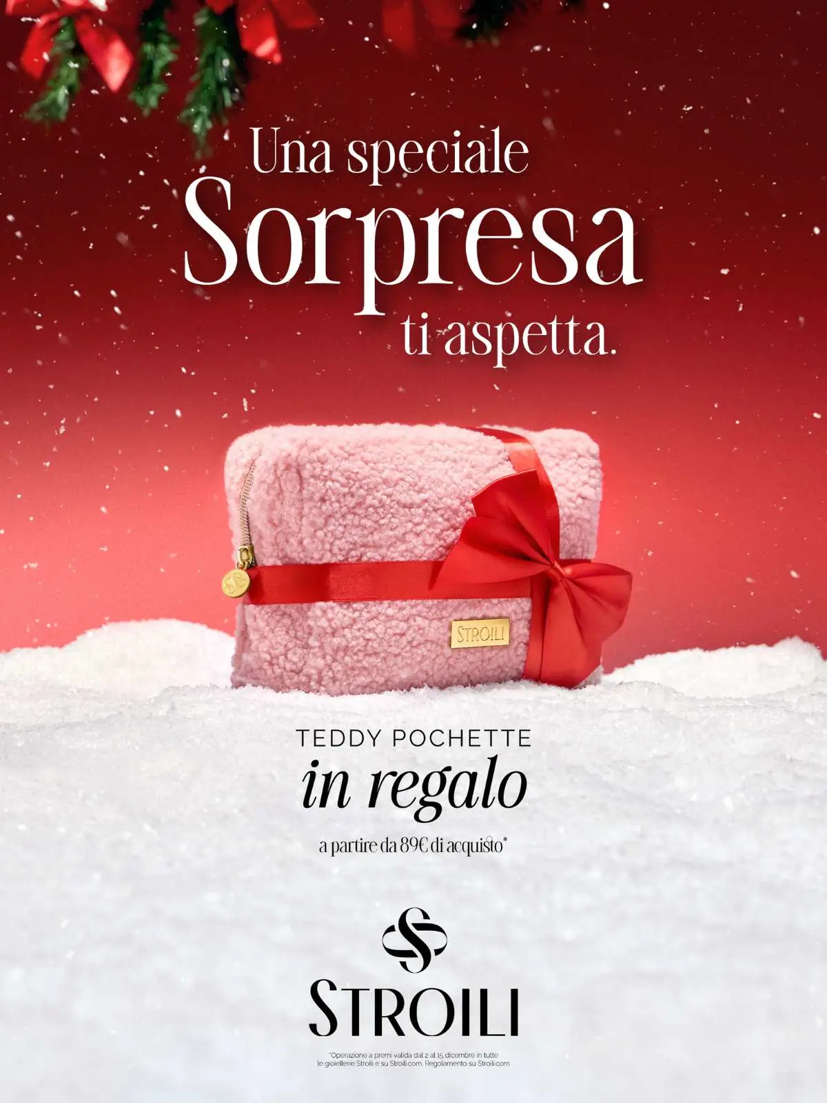Da Stroili il Natale è ricco di Emozioni! Dal 2 al 15 dicembre, con una spesa minima di 89€, in omaggio la morbidissima Teddy Pochette!