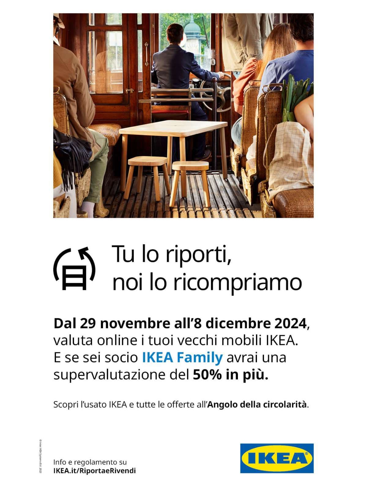 Dal 29 novembre all’8 dicembre 2024, valuta online i tuoi vecchi mobili IKEA. E se sei socio IKEA Family avrai una supervalutazione del 50% in più.